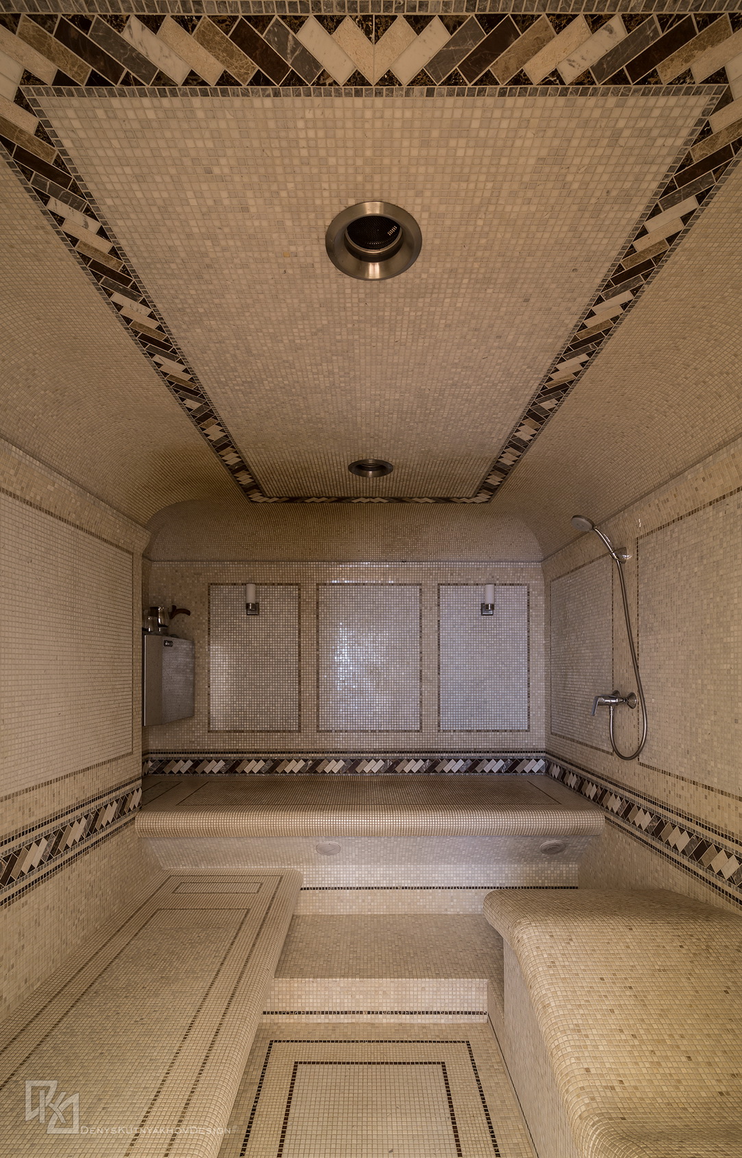 Це не просто оздоровчий простір, а приватна оаза, де можна відчути атмосферу давніх римських купалень, не виходячи з власного будинку. Цей інтер'єр проєкт — уособлення давно римської розкоші та гармонії, де сучасні технології поєднані з величчю давньоримських традицій. Хамам і сауна, виконані в єдиній концепції, створюють атмосферу справжніх терм — простору відпочинку, оздоровлення та релаксу.